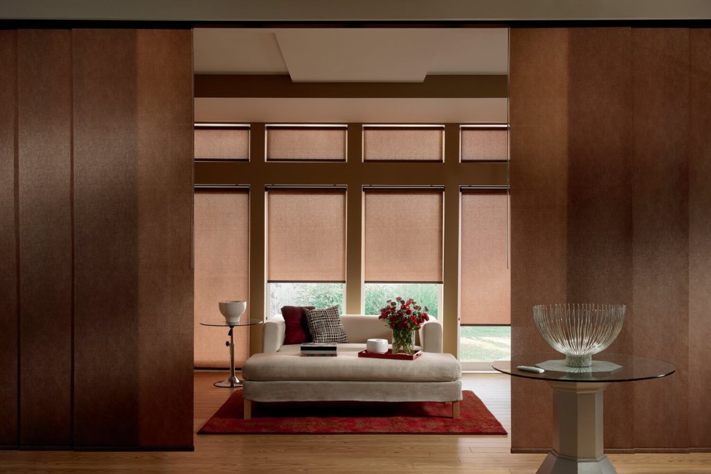 Roller shades can range from soft light filtering to total blackout, depending on the fabric and brand you choose. For example, Graber and Blindsmax Ultra roller shades both offer blackout options that are perfect for bedrooms or media spaces. Solar shades instead maintain a level of visibility while cutting glare and UV — often preferred in living and dining areas.